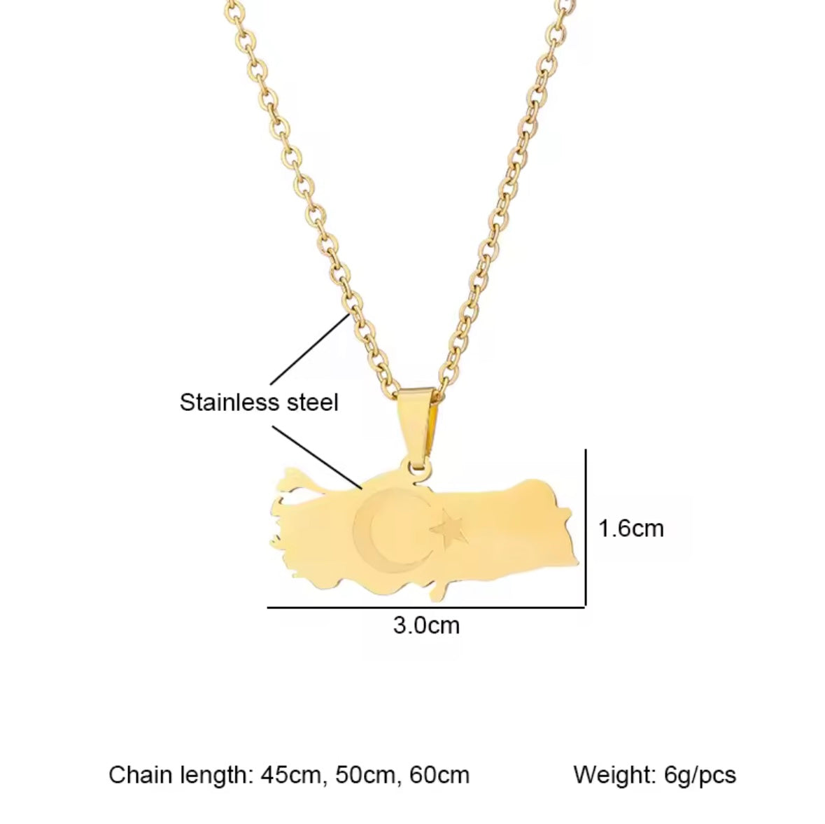 Türkei Ethnische Karte Flagge Anhänger Halskette Edelstahl Gold Silber Farbe Männer Frauen Türkische Landkarte Schmuck